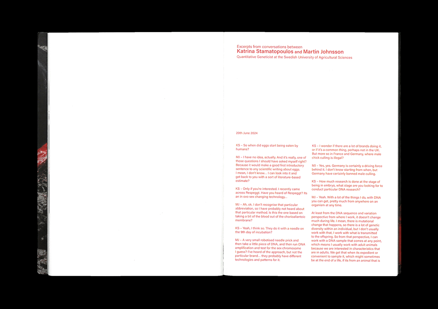DOMESTIC poses important questions around what biological adaptations may occur in the future for these co-dependent relationships, and features excerpts of conversations between Katrina Stamatopoulos and Martin Johnsson, Quantitative Geneticist at the Swedish University of Agricultural Studies in Uppsala, Sweden.