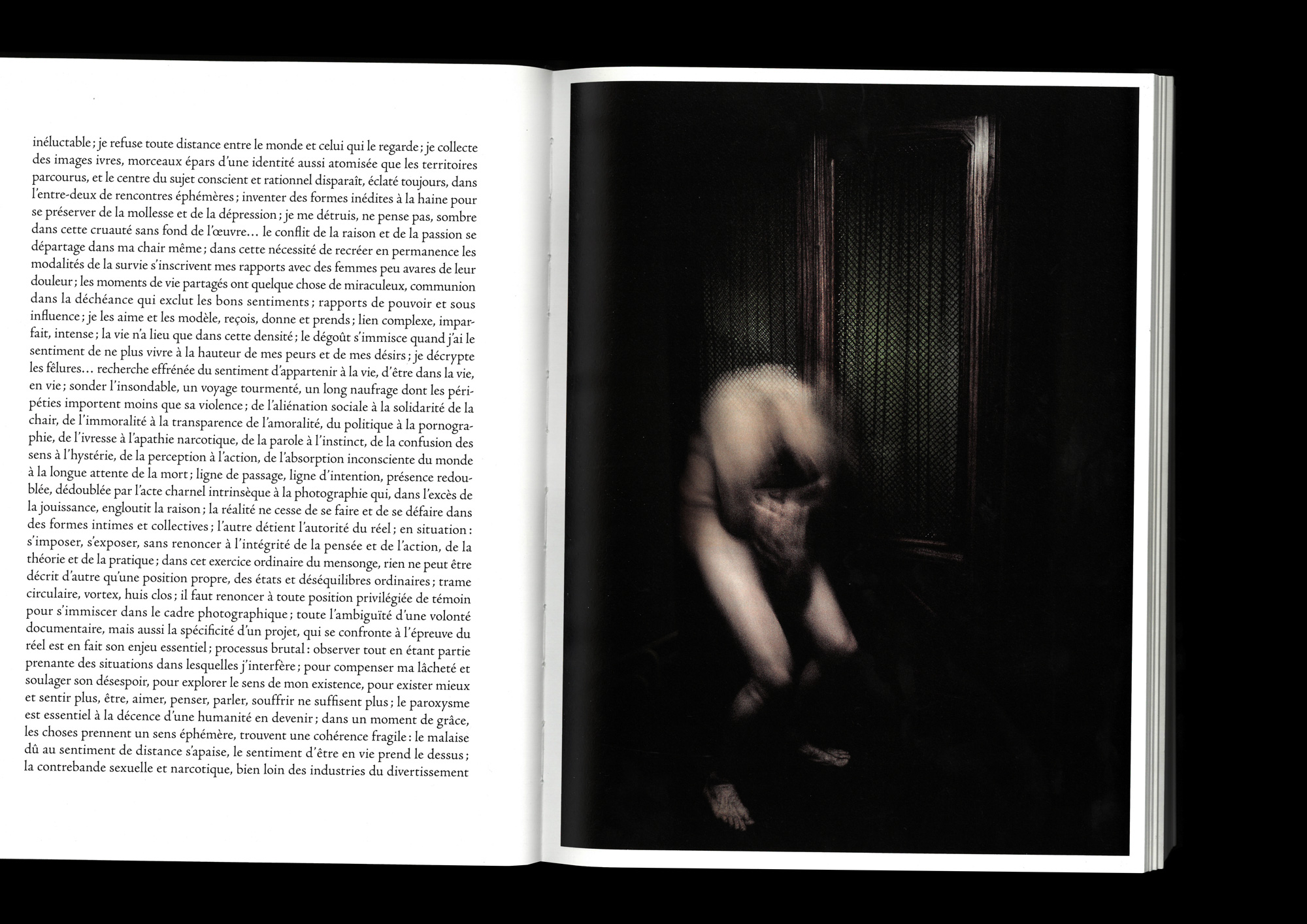 Over more than 560 pages, the book traces the entire career of the photographer. This autobiographical diary contains many images from his well-known series on emotional wandering and sexual relations under the influence of drugs, in more or less legal "underground" environments.