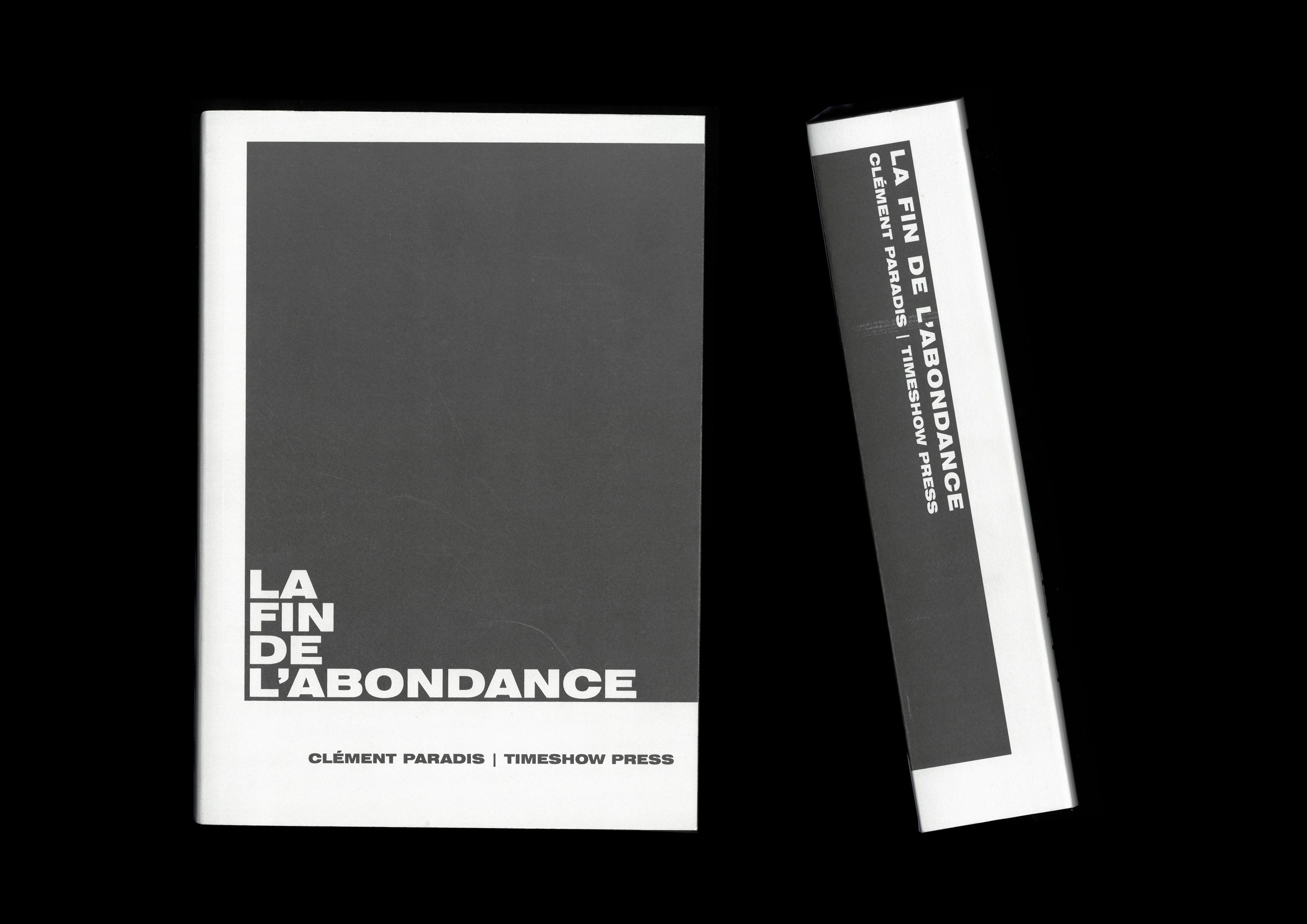 "The layout of the book plays with the abundance of photographs, echoing the contemporary "image supermarket", but also reexamines the metonymic nature expected of photography, the capacity to replace reality that we have tried to attribute to it. The book is a reminder that, once compiled and standardised within a given framework, image-objects produce a different story by submitting to the rhythm of paper, reading and the material supports that house them. This work has therefore been produced in the spirit of 'the end of abundance' and its ramifications, alternating the use of three papers usually destined for industry, advertising, and literary publishing."