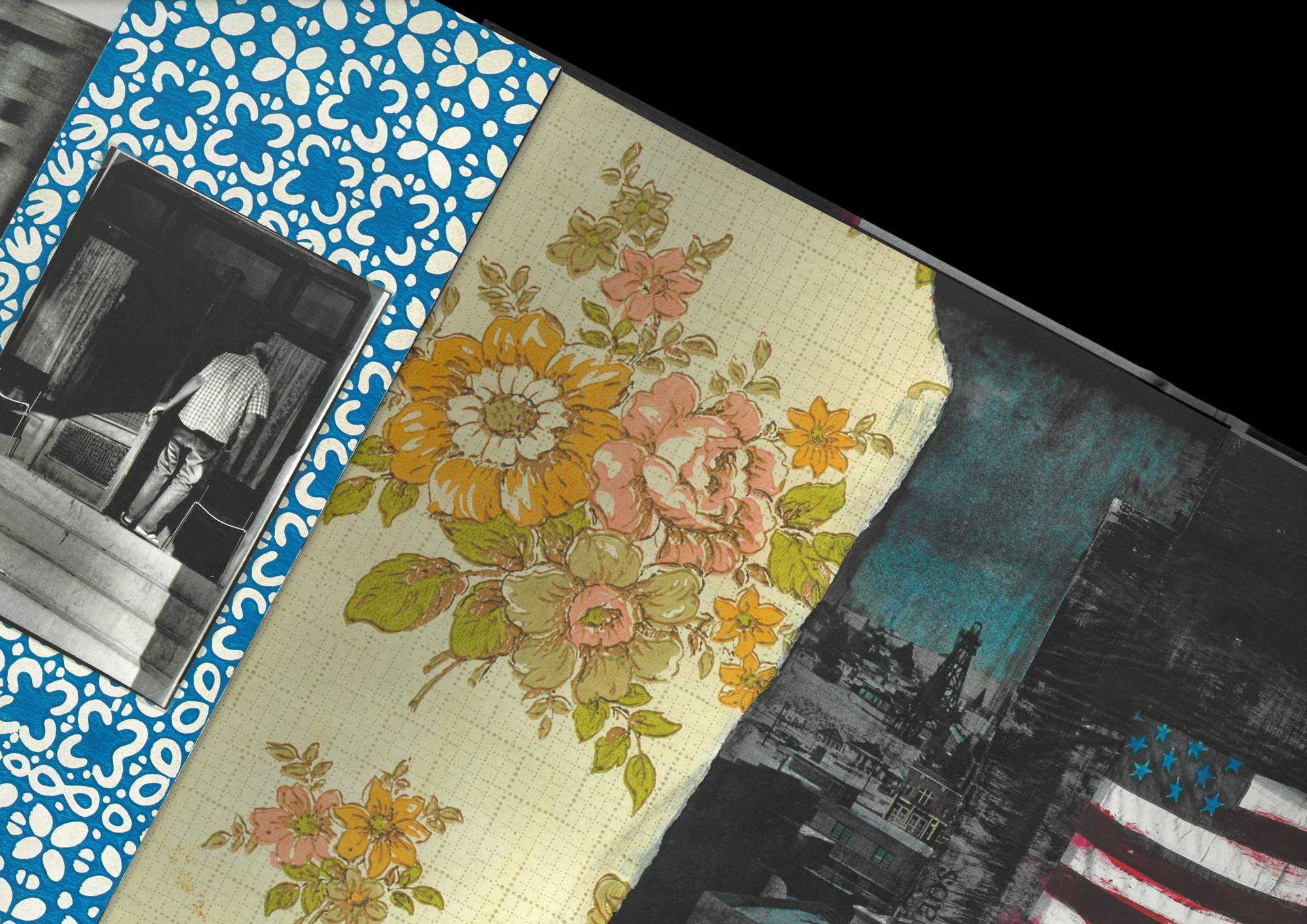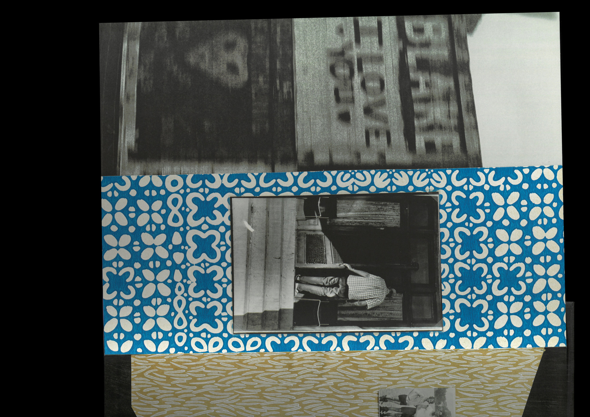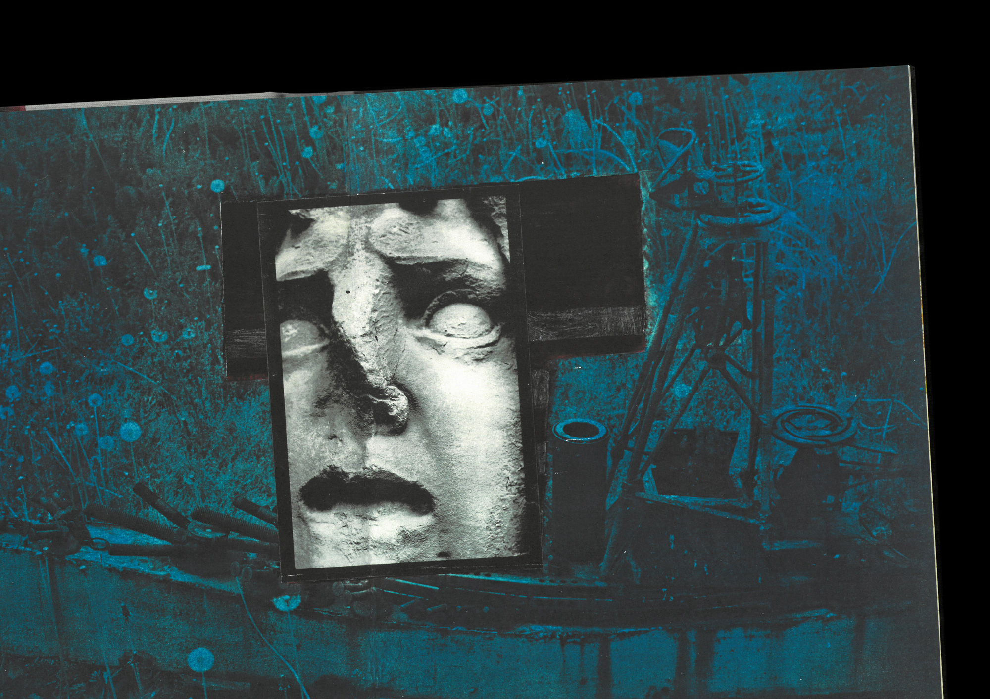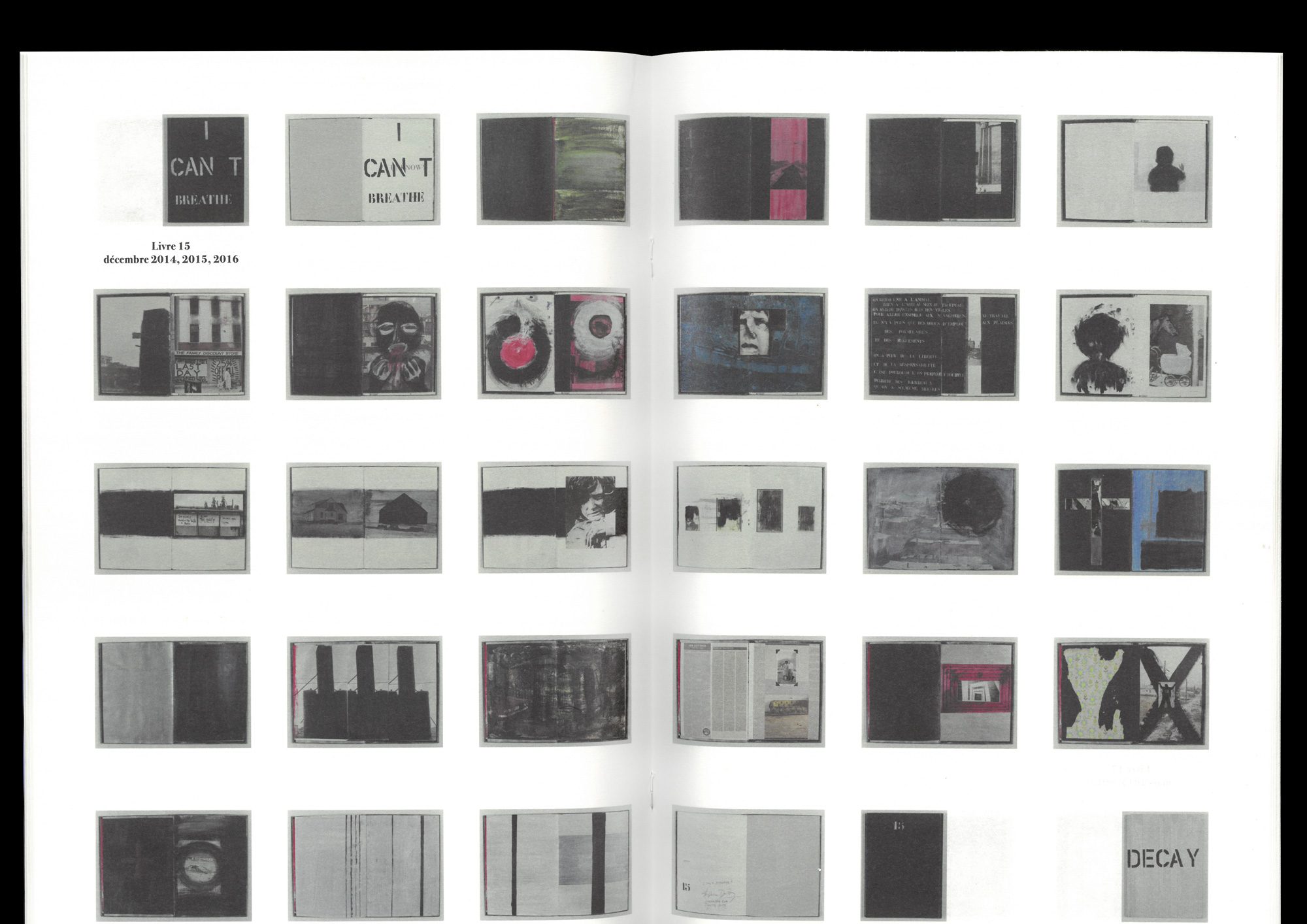 Due to a slight printing defect, he recovers a hundred copies that are not marketable. Two years later, he began a long process of work on the book. Collages, press clippings, anonymous photographs and abstract paintings were inserted throughout the pages, thus altering, recomposing and reinventing the original layout.