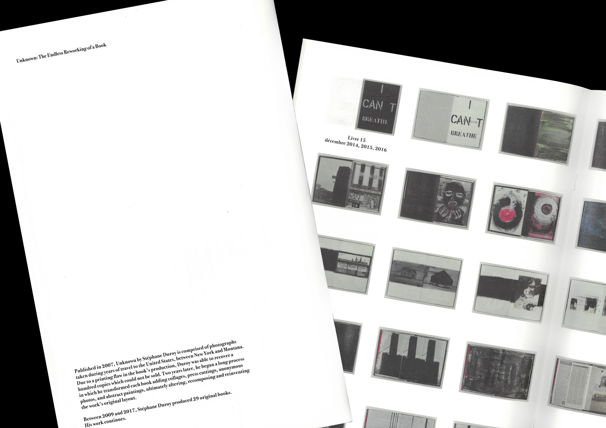 In 2007, Stéphane Duroy published the book Unknown, composed of photographs taken during his multiple trips to the United States, from New York to Montana. This book is a hymn to anonymous rebels and exiles. Since 2009, he has been working on copies of his book Unknown published in 2007.
