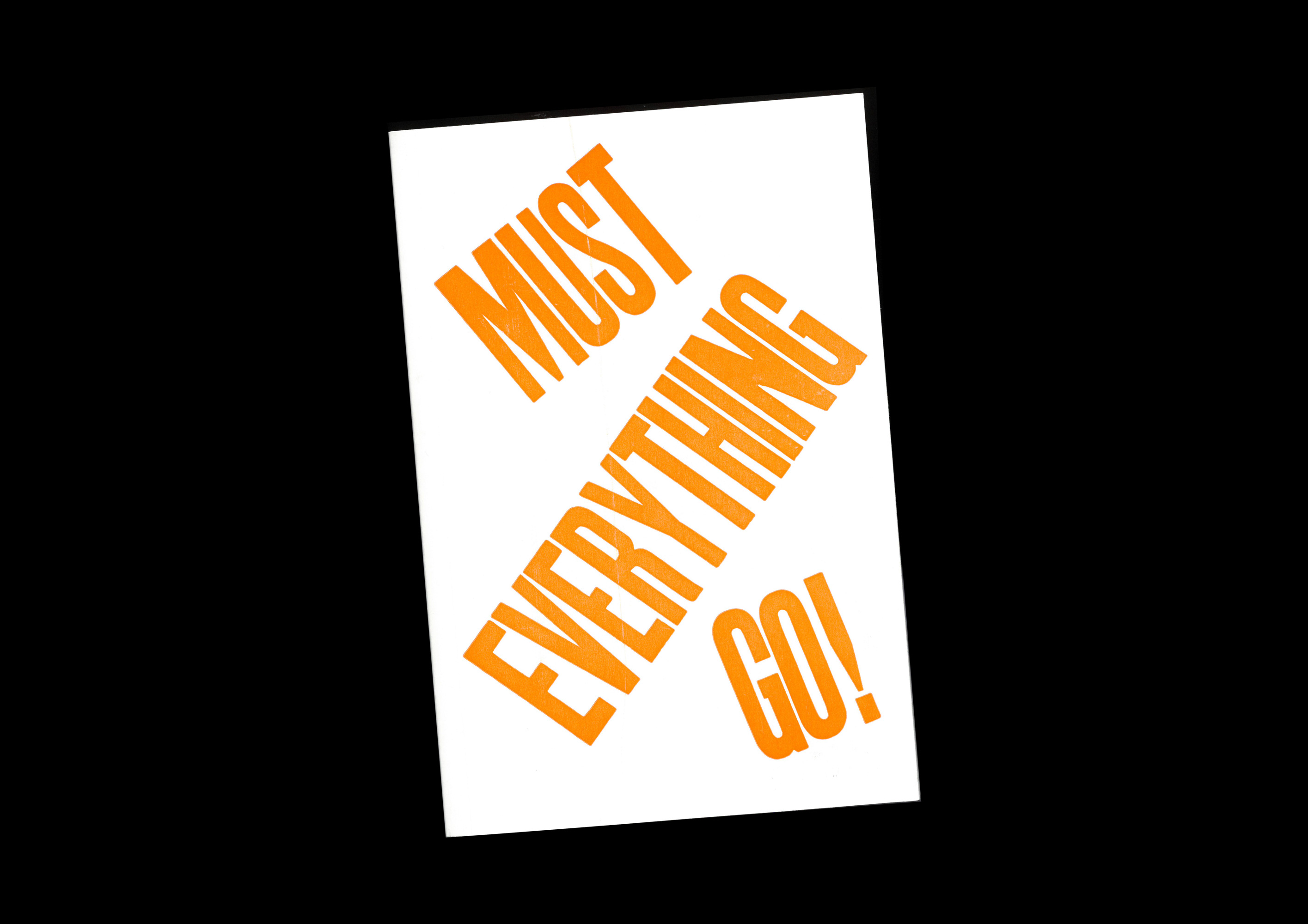 Puisant son inspiration dans les vieux magazines et les petites annonces, Everything Must Go ! rend hommage au langage visuel véhiculé par ces messages publicitaires. Réunissant photographies, essais et illustrations en tous genres, l'ouvrage célèbre et parodie leur design graphique et leur signification.