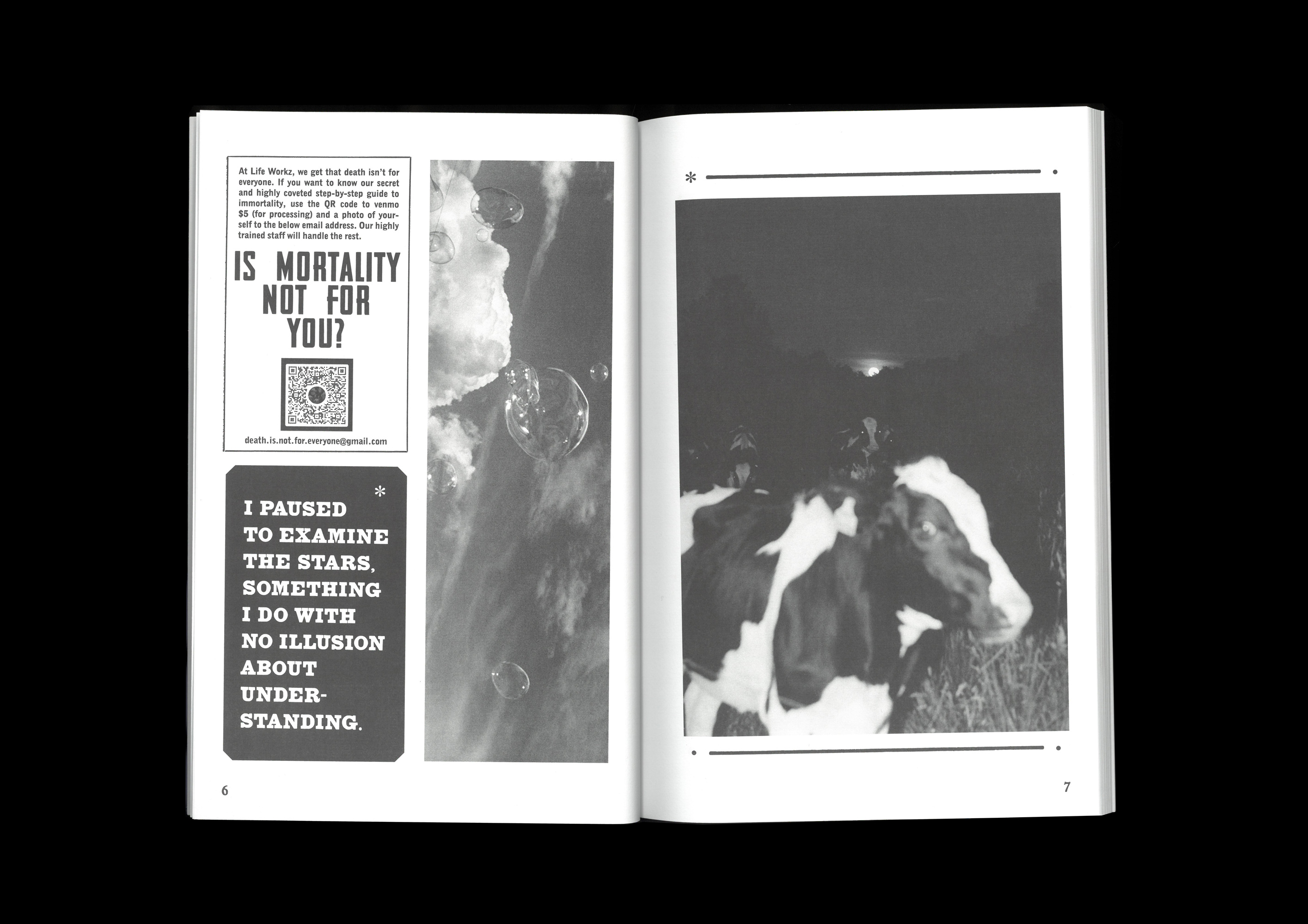 Le livre propose des réflexions sur la maternité, la maladie, la mémoire visuelle, le climat, la technologie, la mortalité ou encore le désir à travers les travaux de Karine Baptiste, Caiti Borruso, Eleanor Eichenbaum, Cable Hoover, Marissa Iamartino, Will Matsuda, Erika Morillo, Michael Popp et Irit Reinheimer.