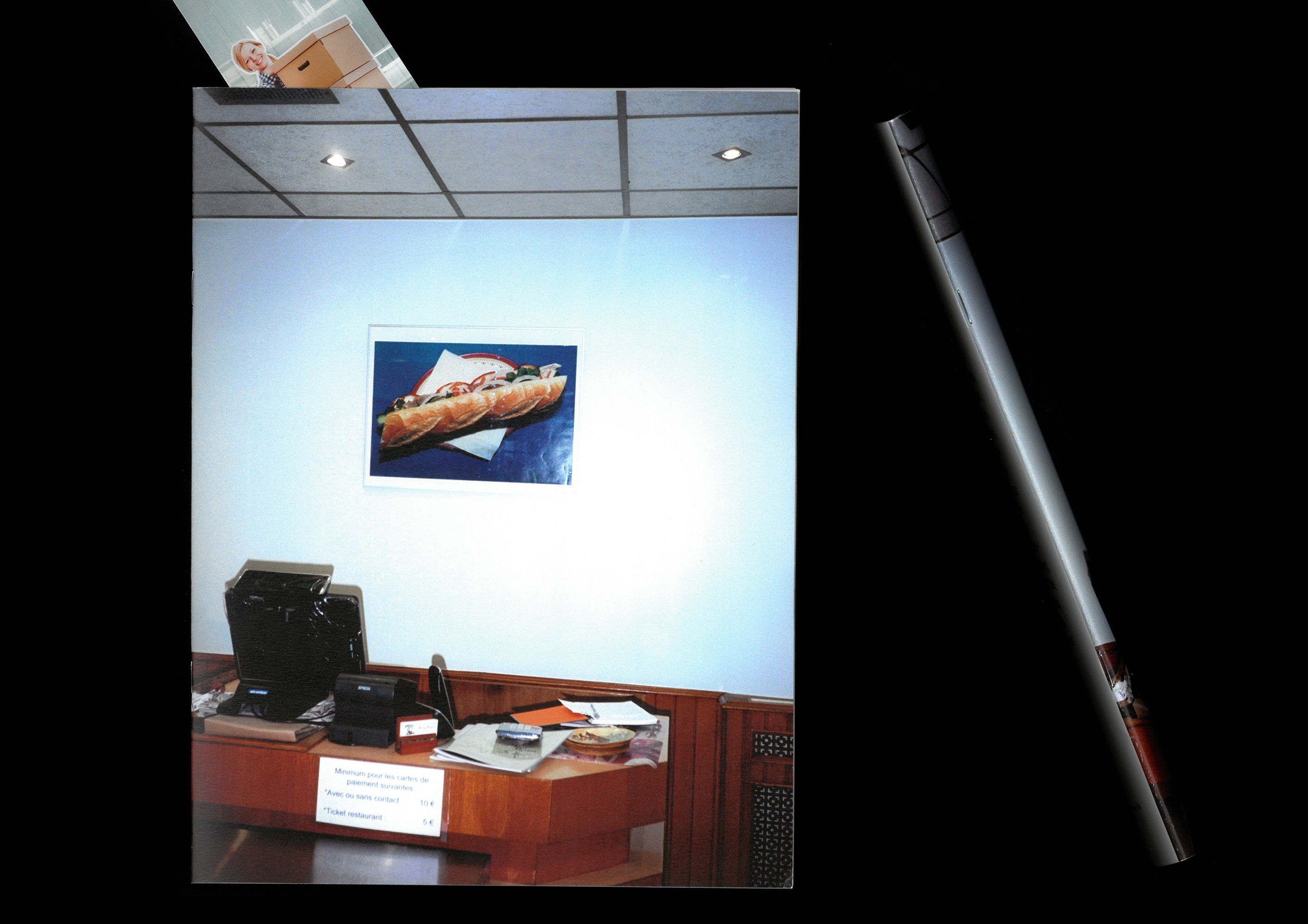 Dans ce premier fanzine auto-édité, Clément Poché présente sa série "impressions directes". À travers des images aux couleurs vive, le photographe dresse un portrait décalé de la région parisienne où il observe et documente des vitrines de magasins, des images présentent dans l'espace urbains et traque ce qui détonne dans le décor quotidien.