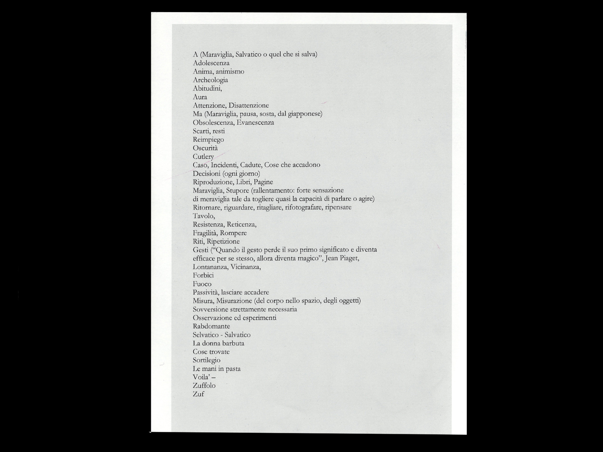 Fruit d'un dialogue étroit avec l'artiste et graphiste Filippo Nostri, ce projet éditorial se déploie selon une double approche chronologique et thématique. L'ouvrage retrace l'évolution de la pratique de Spranzi, mettant en lumière des motifs récurrents qui imprègnent et structurent sa recherche, tels que la tension entre échelle et intimité, la circulation et la transformation des images, et l'oscillation entre réalité et émerveillement.