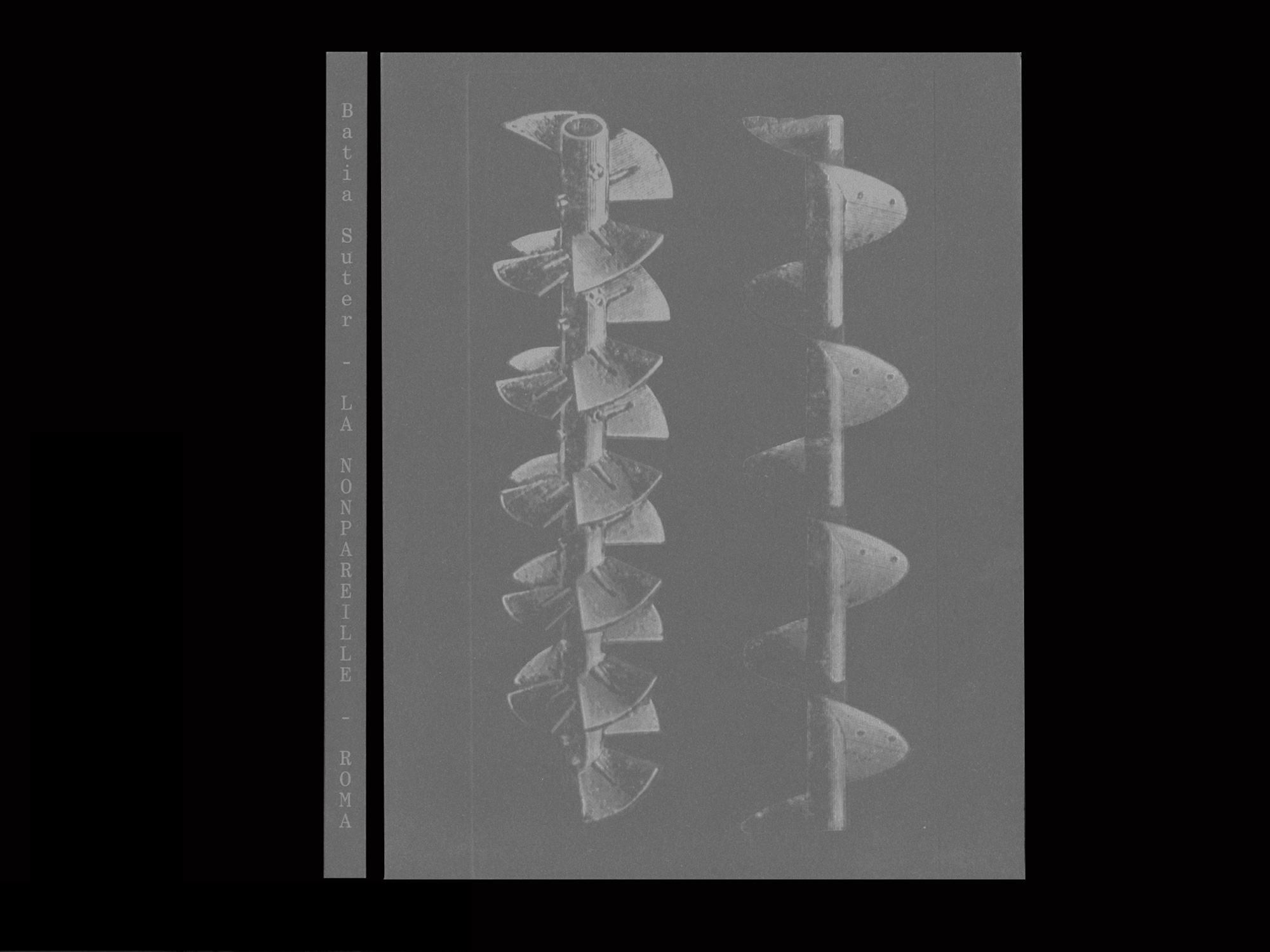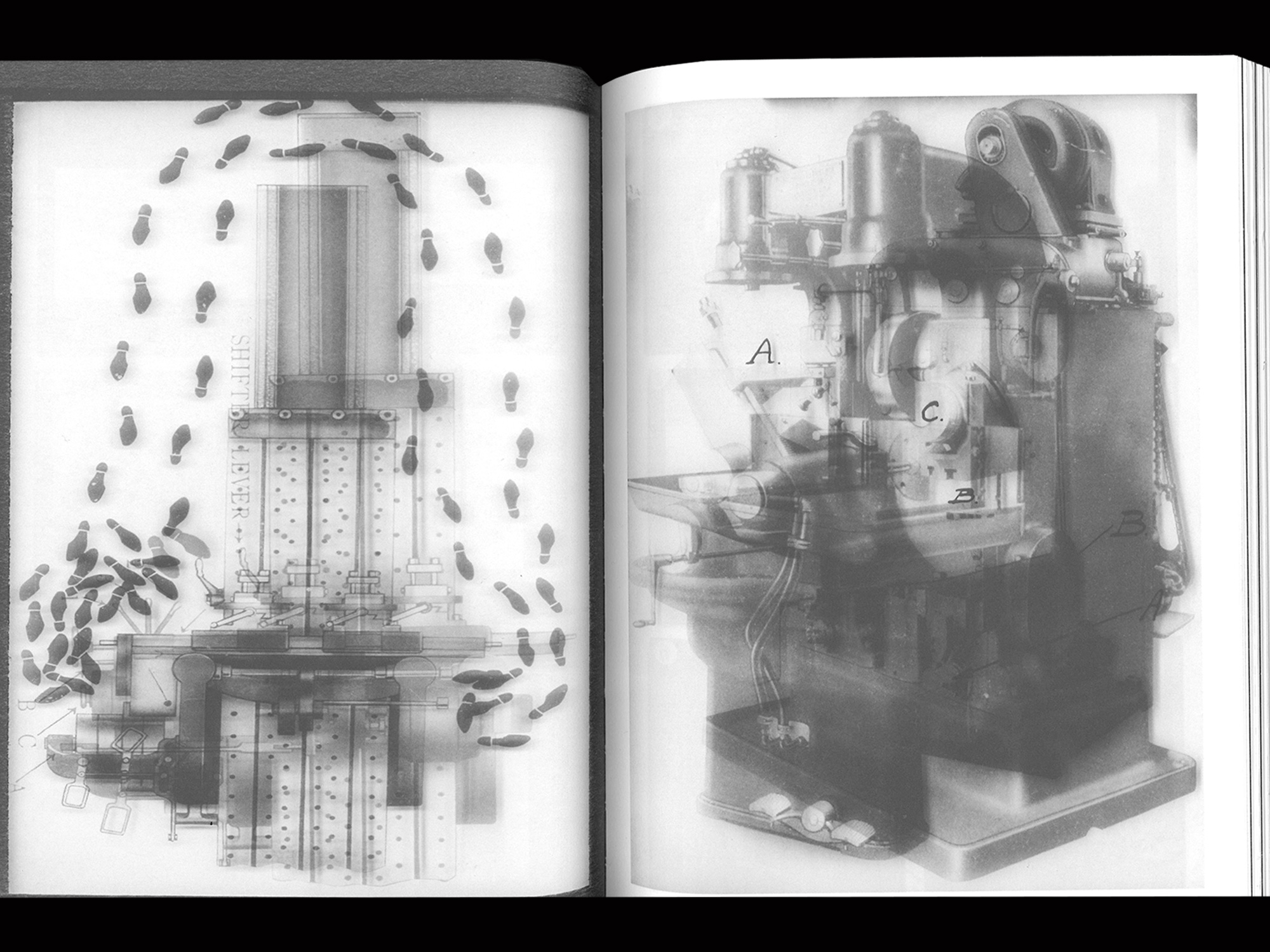 La Nonpareille s’inspire de l’installation in situ de Batia Suter à l’université technique de Delft, dans laquelle elle a utilisé des archives de diapositives en verre provenant de la bibliothèque de l’établissement. Utilisées à l’origine entre 1900 et 1960 pour des cours de technologie mécanique, ces plaques visiblement usées documentent des machines, des matériaux industriels et des processus de production à une époque marquée par une mécanisation croissante. Suter retravaille ce matériel pour en faire une réflexion visuelle sur l’imbrication entre les humains et les machines, et sur la manière dont la technologie remodèle la perception, le travail et la vie quotidienne. De nombreuses compositions du livre consistent en des montages superposés, où plusieurs images se chevauchent pour créer de nouvelles formes et associations.