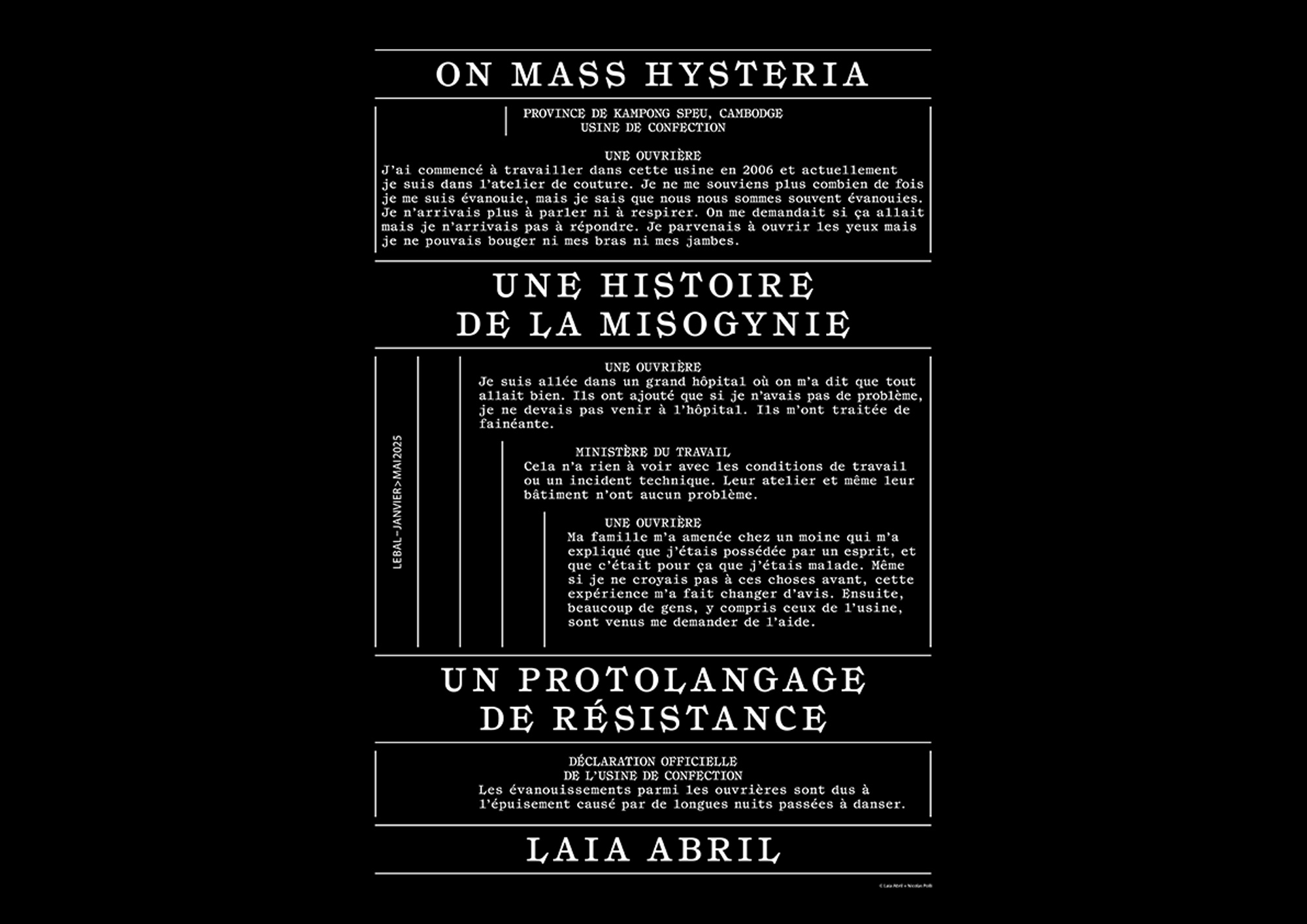 Affiche publiée par LE BAL à l'occasion de l'exposition "On mass hysteria" qui a eu lieu du 17 janvier au 18 mai 2025.