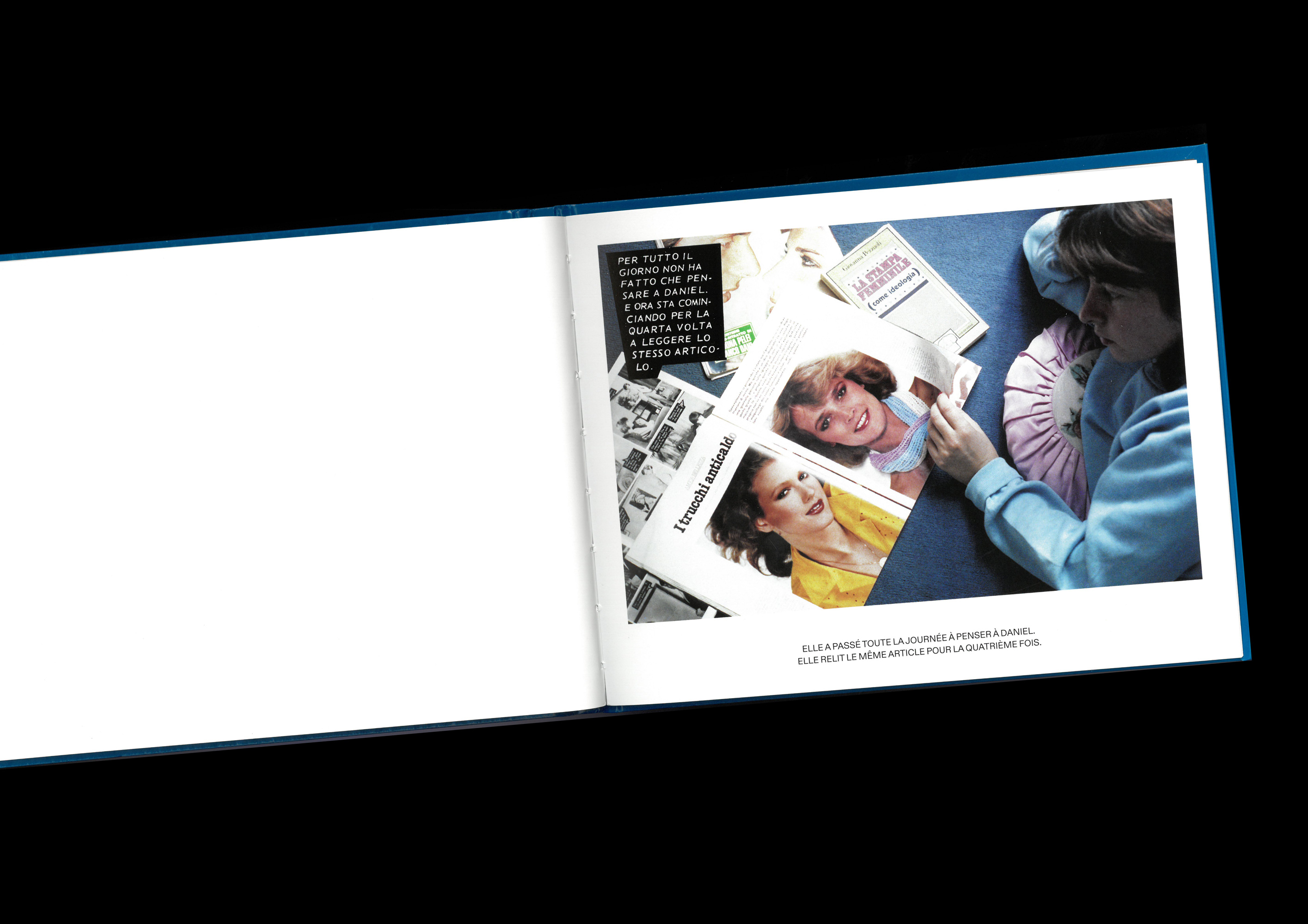 Romans Photos - Mythes et Clichés (1976-1980) reprend une des séries photographiques les plus connues de Nicole Gravier. Réalisée entre 1976 et 1980, ces photographies sont des pastiches de photo-romans italiens dans lesquels l'artiste française se met en scène. Cette série colorée et remplie d'humour conduit à un détournement ironique et critique sur le monde de l’art et la condition féminine.