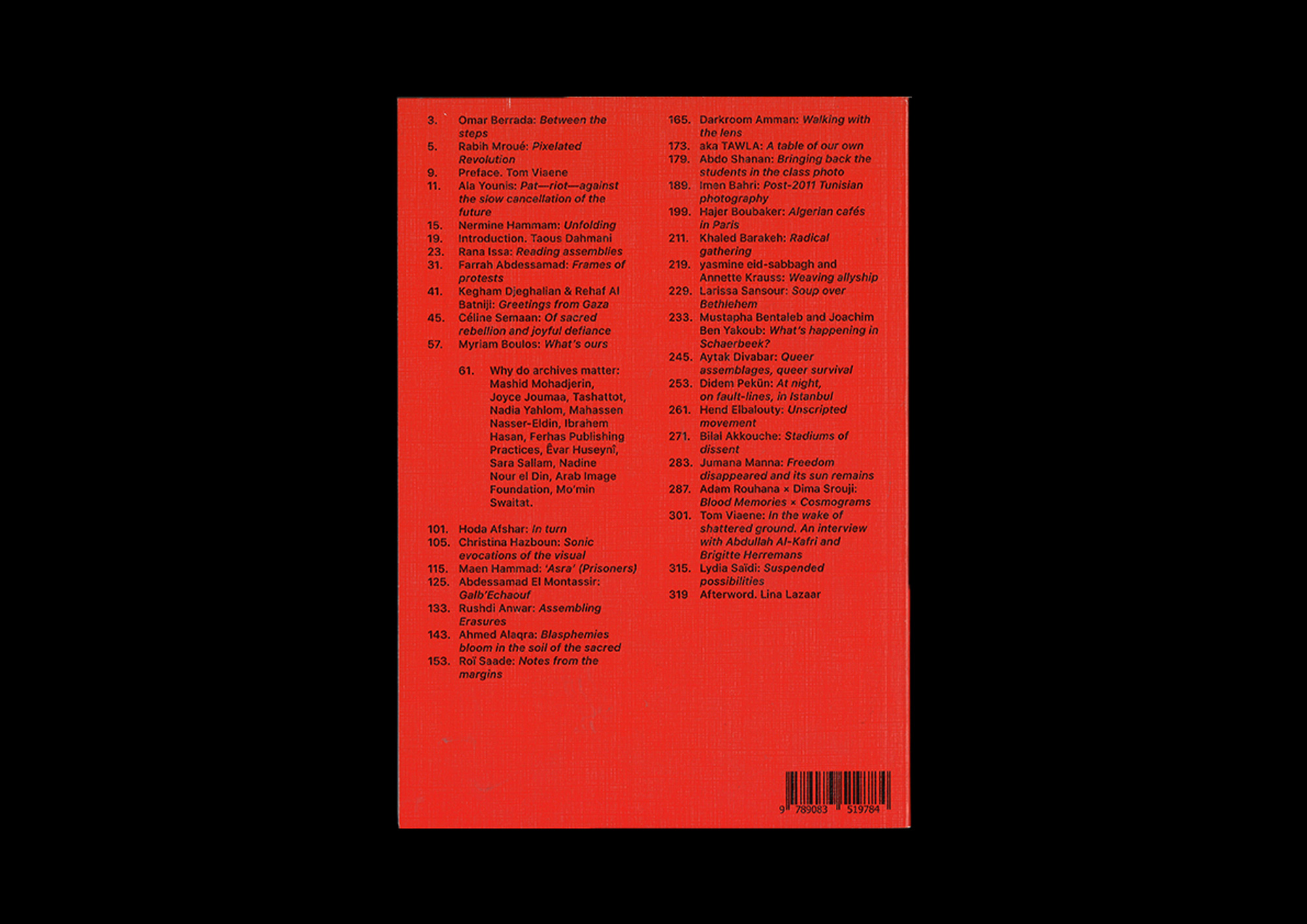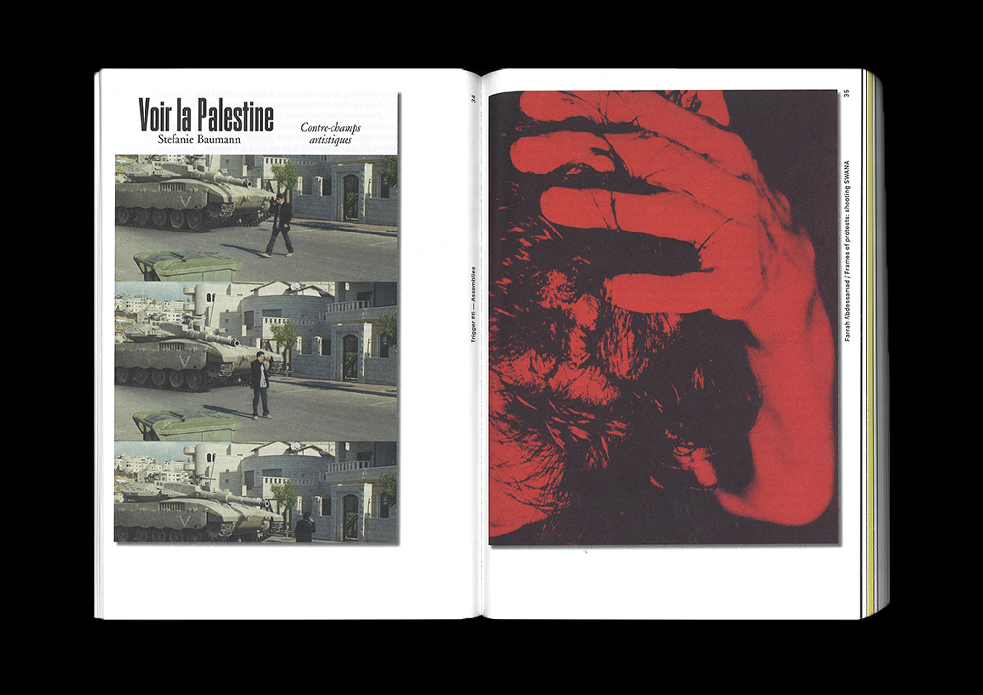 Ce numéro de Trigger présente une collection de photographies, d'images et d'essais personnels qui réinventent ce que sont, pourraient être ou pourraient devenir les rassemblements sociopolitiques. Parcourant la région de l'Asie du Sud-Ouest et de l'Afrique du Nord (SWANA), elle examine la politique du rassemblement et retrace les nombreuses formes que peuvent prendre les rassemblements – des manifestations aux rituels, des cercles informels aux rencontres éphémères – afin de réfléchir à ce qui reste et à ce qui vient après. Edité par Taous Dahmani en collaboration avec FOMU Assemblies, le livre présente des artistes et des écrivains tels que abih Mroué, Ala Younis, Hoda Afshar, Myriam Boulos, Céline Semaan, Farah Abdessamad, Didem Pekün, Larissa Sansour, Jumana Manna, Khaled Barakeh, ainsi qu'une vaste section d'archives avec des œuvres de Mashid Mohadjerin, Joyce Joumaa, Tashattot, Mahasen Nasser-Eldin, Arab Image Foundation, et bien d'autres.