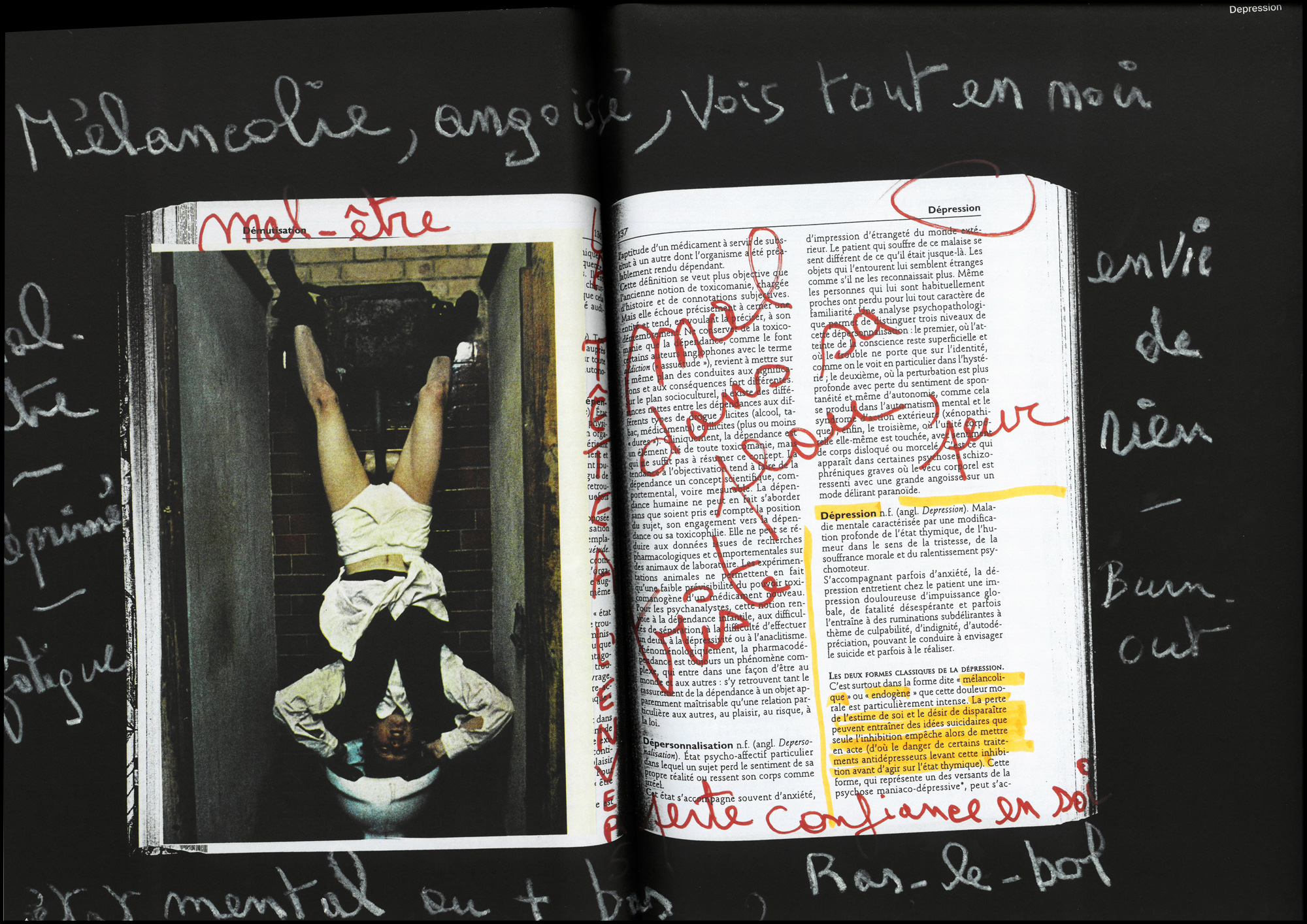 Le livre Un Abécédaire de la Psychiatrie est le fruit d’une collaboration entre les artistes du duo No Sovereign Author et les patients du centre psychiatrique de jour « La Fabrique du Pré », situé à Nivelles, en Belgique. Cet ouvrage, présenté sous la forme d’un dictionnaire, invite à repenser l’univers de la psychiatrie à travers la sensibilité des patients.